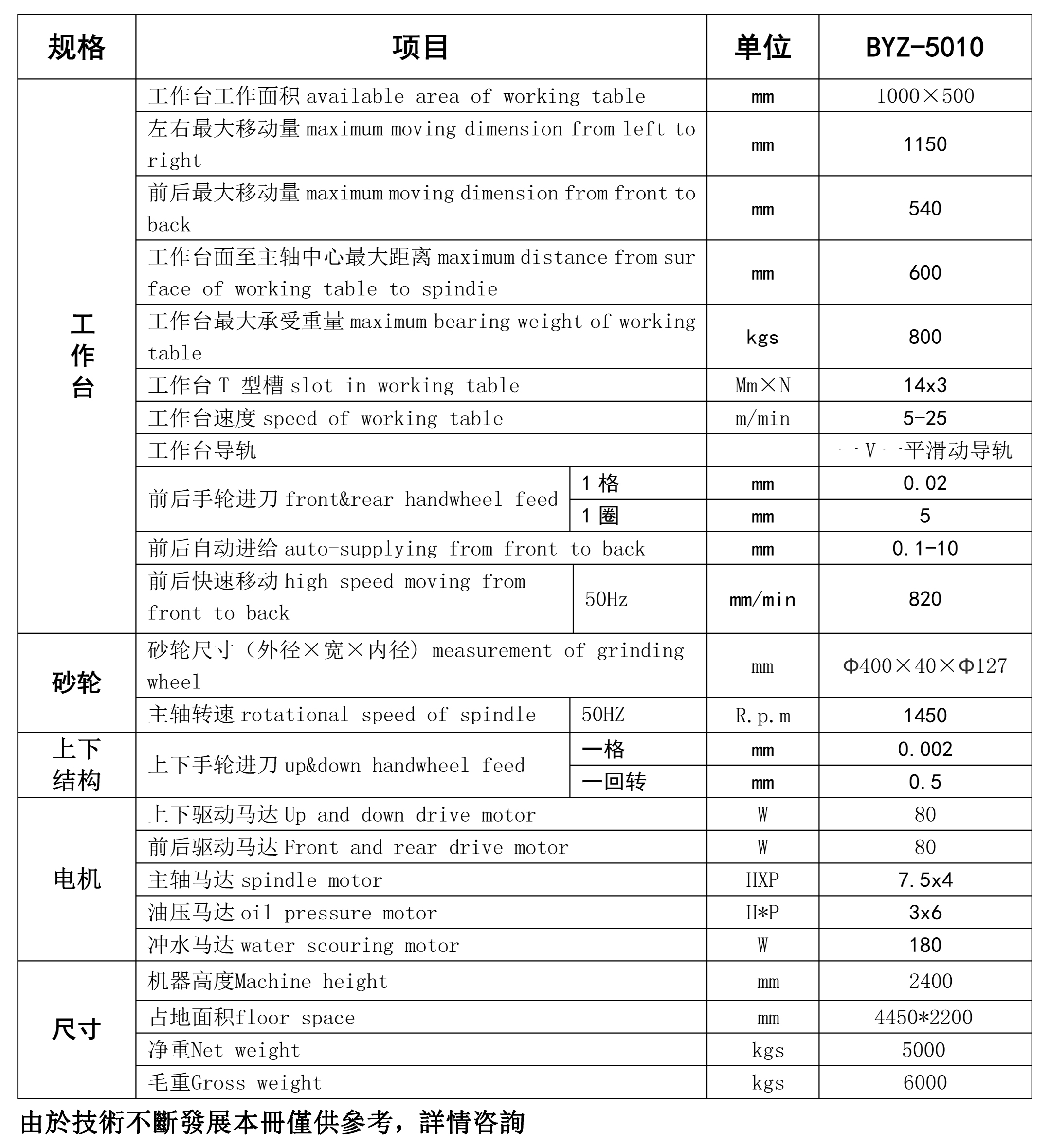 3、本機主軸,軸心跳動0.003mm以內,采用日本P4級軸承。